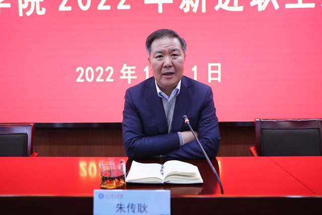 随后,朱传耿寄语新职工,提出了四点要求:一是持续学习,努力提升自身综合素养。要立足自身岗位,紧跟时事热点,当前须认真学习贯彻落实好党的二十大精神。博览群书,积极拓展尖宽结合的“十字形”知识结构,将个人的政治理论学习、业务知识拓展与党和国家的政治生活紧密相连,让青春脉搏与时代脉搏同频共振。二是崇尚实干,以实际行动诠释使命担当。面对新环境、新岗位、新挑战,要厚植实干精神,对标先进、见贤思齐,鼓足实干劲头,认真做好每项工作、守好每个岗位,开好头、起好步,以实际行动为“新南体”建设贡献新的力量。三是善于思考,努力掌握科学的思维方法。要不断提升辩证思维、结构思维、系统思维、战略思维等能力,积极锤炼看问题的眼力、解难题的脑力、做实事的脚力,自觉用科学的思维方法指导学习、工作和生活实践。四是勇于创新,积极推动学校办学事业高质量发展。要灵活运用“三情”分析法,在全面把握“上情”,充分掌握“下情”,积极了解“外情”上下功夫,进一步提高工作的创新性,以“人无我有、人有我新、人新我特”的创新思路,积极推动学校各项事业高质量发展。