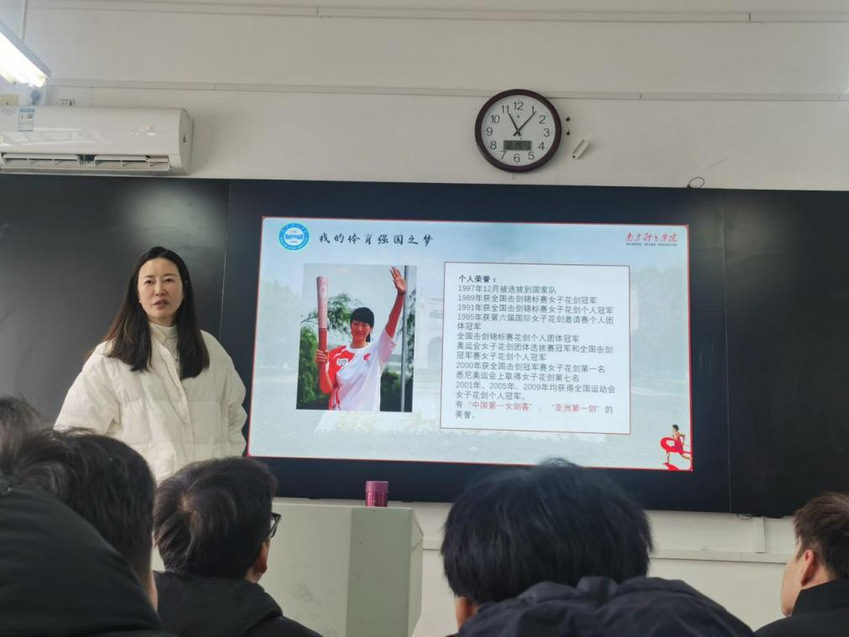 为促进思政课的改革创新,弘扬中华体育精神,12月19日上午,党委常委、副校长肖爱华走进思政课堂,为2023级休闲体育专业学生讲授“弘扬中华体育精神,助力体育强国梦”专题思政课。