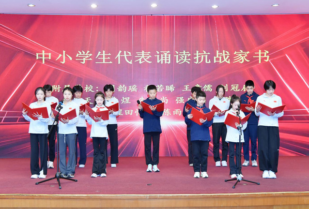 附属学校的中小学生代表深情诵读了抗战家书《烽火连天家国情——左权致妻子刘志兰》,以真挚的情感再现了烽火岁月中的家国情怀,字里行间浸透着民族大义和共产党人的初心使命,一封烽火家书不仅叩响了少年心扉,也深深打动了现场师生。