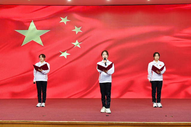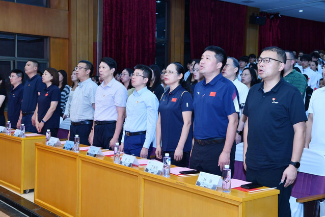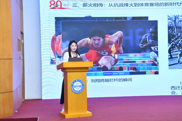 活动在全体人员齐唱国歌声中拉开帷幕。马克思主义学院教师杨雨结合学习习近平总书记在纪念中国人民抗日战争暨世界反法西斯战争胜利80周年大会上的重要讲话,以《从抗战烽火到青春赛场:抗战精神的时代回响与青年担当》为题,以习近平总书记在纪念中国人民抗日战争暨世界反法西斯战争胜利80周年大会上的重要讲话为切入点,深入阐释了抗战精神的深刻内涵与当代价值,引导青年学子在新时代背景下传承红色基因,砥砺强国之志,鼓励青年大学生奋斗其时不负盛世,让青春在教育强国、体育强国建设征程中绽放光彩。