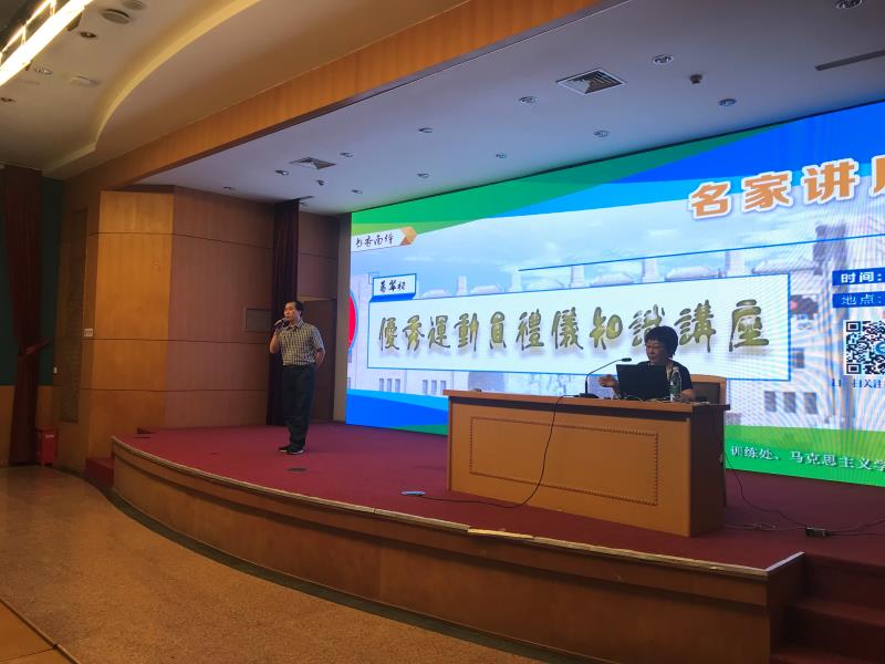 5月28日晚,结合训练处组织的“学训融合活动周”活动,马克思主义学院副院长葛翠柏在校图书馆报告厅为竞技体育学院优秀运动员做了“优秀运动员礼仪”专题讲座。讲座由竞技体育学院党总支书记丁习明主持,各优秀运动队运动员参加讲座。