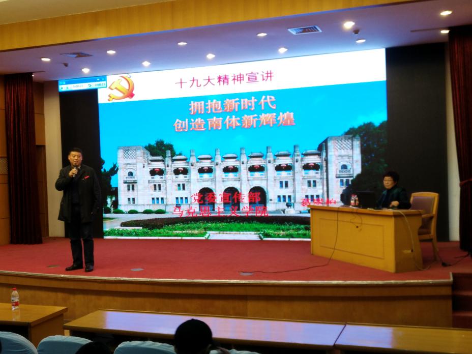 121日晚,PA视讯审核评估工作结束后,宣传部副部长、马克思主义学院副院长葛翠柏在校报告厅为优秀运动队两百多名干部和运动员宣讲了党的十九大精神。