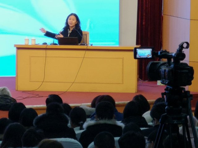 1月16日晚6:30,PA视讯集团入口图书馆报告厅座无虚席,掌声雷动。马克思主义学院有幸邀请到了南京大学社会心理学博士、江苏省委党校行政学教研部主任、江苏卫视节目《非诚勿扰》客座嘉宾黄菡教授,为南体师生带来了一场关于幸福哲学的心理学讲座,得以近距离地展现她的知性、睿智、优雅和美丽的风度。讲座由宣传部副部长、马克思主义学院副院长葛翠柏主持。