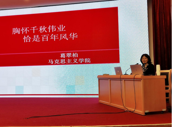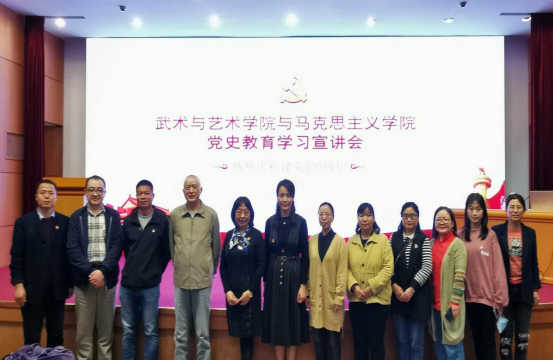 4月27日下午,马克思主义学院赴武术与艺术学院进行党史学习教育宣讲,宣讲会在图书馆第一报告厅举行,马克思主义学院直属党支部书记、副院长葛翠柏进行《胸怀千秋伟业,恰是百年风华》专题党课。宣讲由武术与艺术学院党总支书记殷怀刚主持,马克思主义学院全体教师、武术与艺术学院全体党员、入党积极分子、学生干部以及离退休工作处领导和老师参加了本次宣讲会。