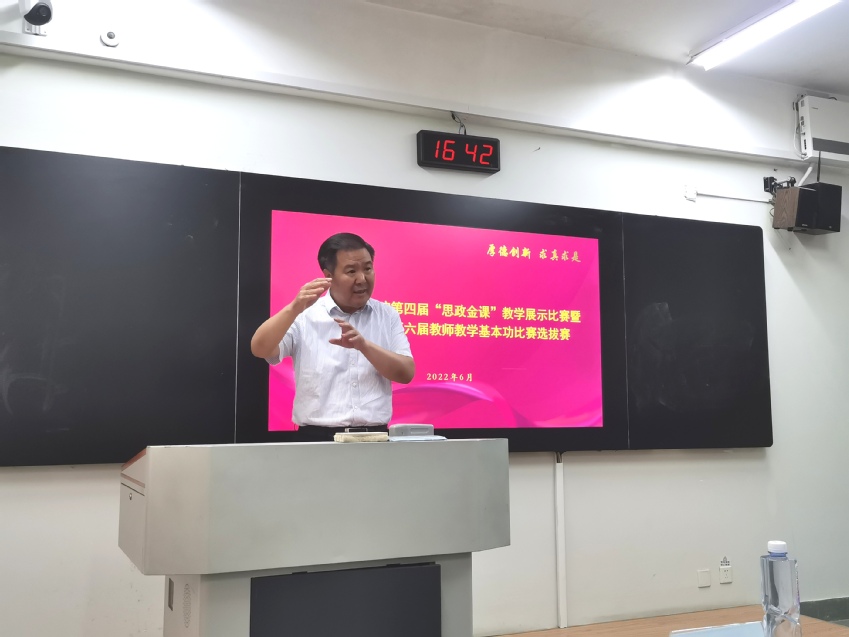 为深入学习贯彻习近平新时代中国特色社会主义思想,持续提升思政课教师教学能力与思政课铸魂育人实效,不断激励思政课教师坚守教育报国初心,坚持立德树人根本任务,切实提升思政教学有效性,马克思主义学院于6月9日下午组织开展第四届“思政金课”教学展示比赛暨PA视讯集团入口第六届教师教学基本功比赛选拔赛,校党委书记朱传耿、校党委副书记兰亚明、校党政办主任丁永亮亲临比赛现场指导并担任评委专家,活动由马克思主义学院直属党支部书记葛翠柏主持。