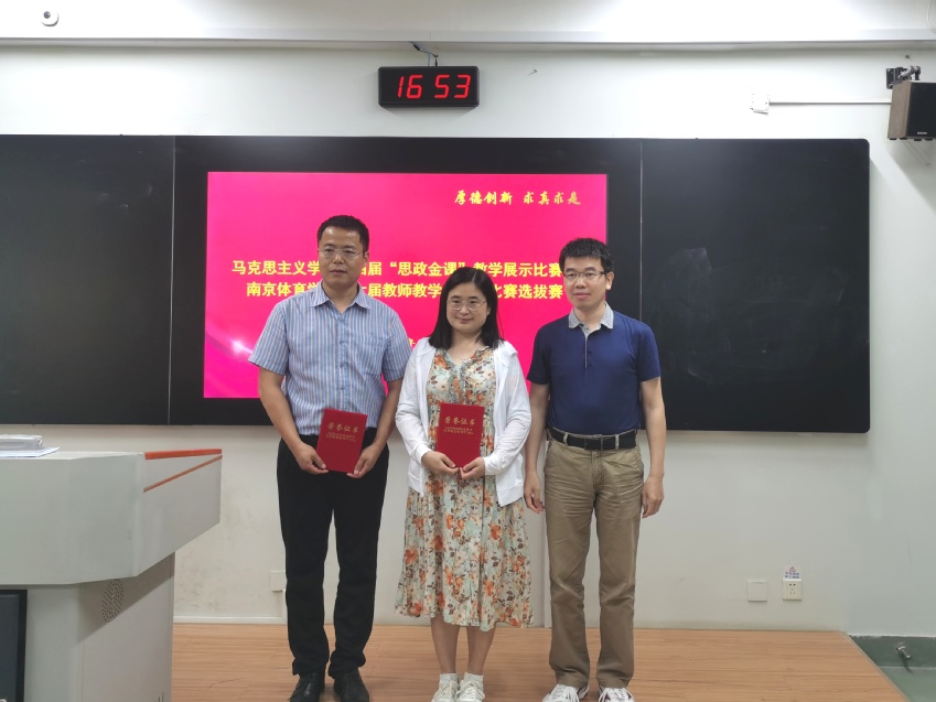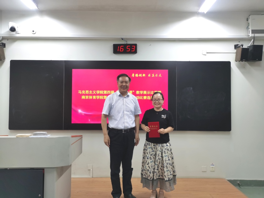 校党委书记朱传耿对参赛教师的表现进行点评。他认为7位老师备课充分,教学设计认真,幻灯片图文并茂,表达流畅,有些老师能将口头语言、书面语言和手势语言相结合,注重师生互动,很有感染力,达到预定教学目标,教学效果较好。朱书记对思政课教师提出四点具体要求:一是在教学目标上,要注重增强大学生政治感悟能力和科学思维能力的提升。思政课讲授内容要具有辩证性、系统性、综合性,通过思政课程的讲授,把问题讲清楚,让大学生把握正确的政治方向;二是在教学内容处理上,要强化前后关联和系统关联,重视对重点、难点的处理,加强新知识和原有知识的联系;三是在教学语言上要把握好节奏,讲好开头三句话,做到张弛有度、抑扬顿挫,练就演讲与口才,增强授课感染力;四是在教学方法上不断创新,摸索出一条符合体育院校大学生特点的思政课教学方法和模式。要针对体育院校学生特点,在授课内容取舍上下功夫,做到少而精,将思政课与体育专业相结合,持续加强与学生的交流互动。