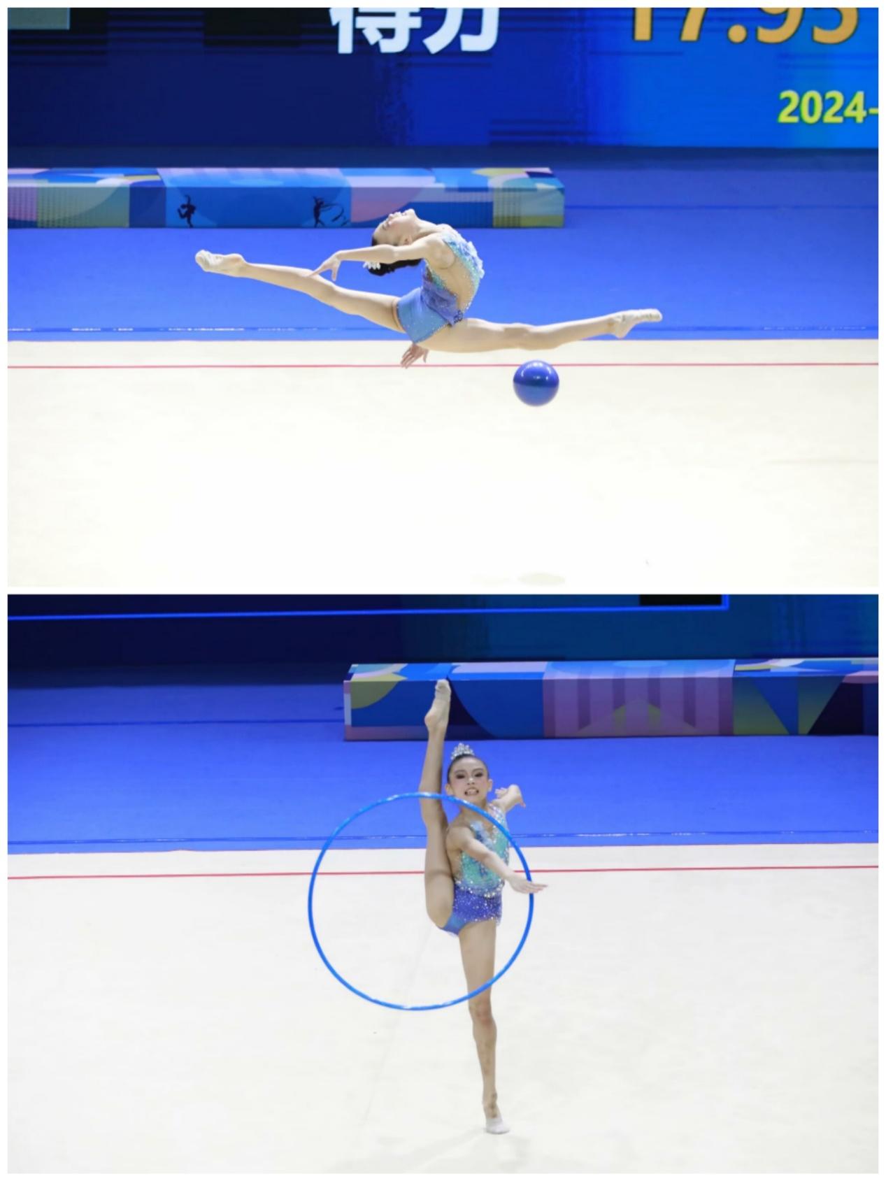 少年A组、C组运动员苏墨涵、江睿萱徒手、带操比赛现场