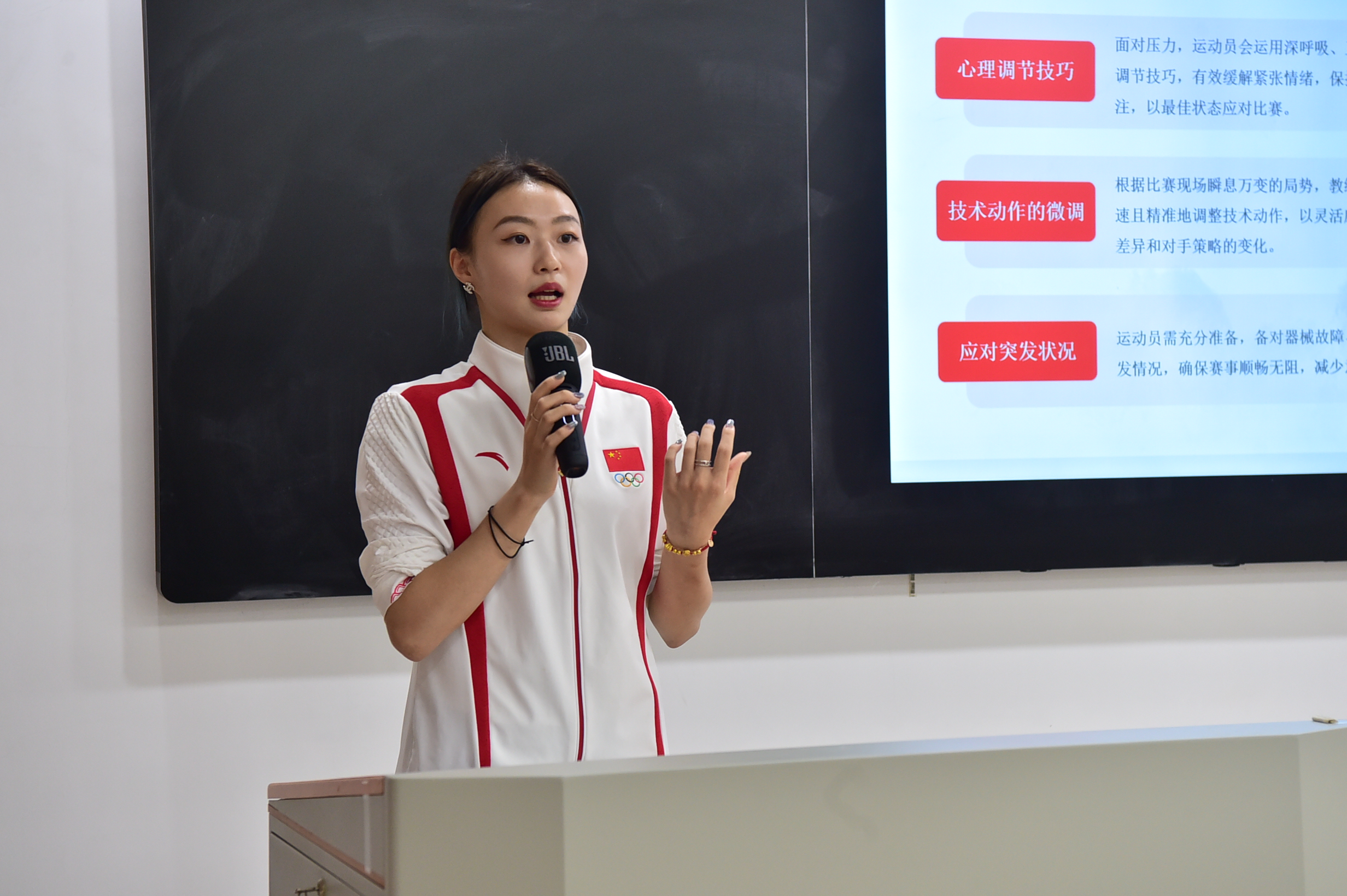 在今年夏天举行的巴黎奥运会艺术体操集体全能决赛中,江苏运动员郝婷携手队友,以总分69.800分的成绩夺冠,拿下中国艺术体操队史上的首枚奥运会金牌,取得了历史性突破。这次分享,郝婷以个人参加的东京奥运会和巴黎奥运会两届赛事经历为依托,向小队员们分享自己的备战经验。