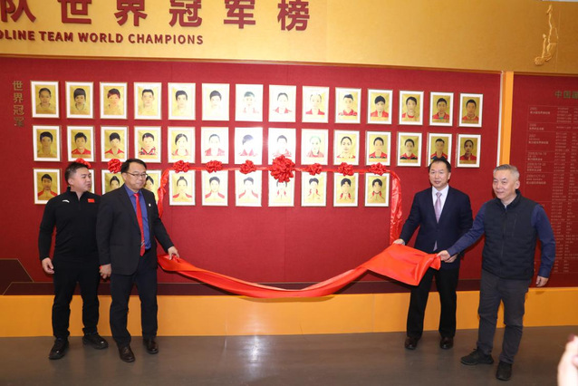 仪式上,刘健副院长与中心领导共同为王梓赛、邱铮、薛振邦、洪延明四位世界冠军揭榜。他们的照片庄严悬挂于冠军墙,象征着国家荣誉与不懈奋斗的结晶。国家体育总局体操运动管理中心领导向新登榜的世界冠军表示热烈祝贺,并高度赞扬了他们顽强拼搏、勇攀高峰的精神风貌。洪延明在体操赛场上展现出的精湛技艺与稳定心态,王梓赛、邱铮、薛振邦在蹦床项目上完成的尖端难度与完美表现,均已载入中国体操史册,也充分彰显了我院在体操、蹦床项目上扎实的后备人才培养功底与卓越的训练水平。