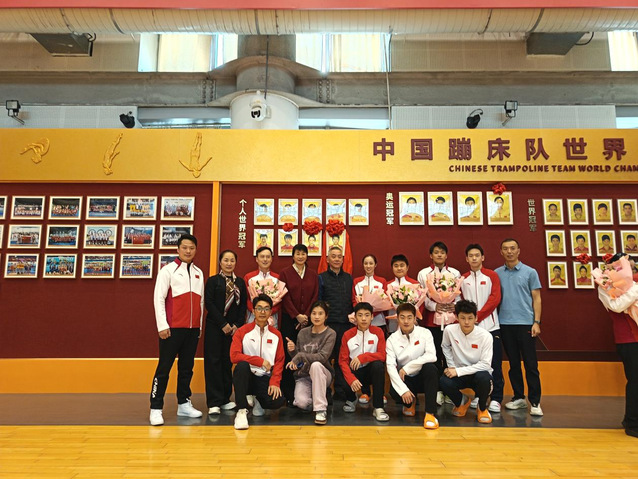 蹦床世界冠军登榜后合影