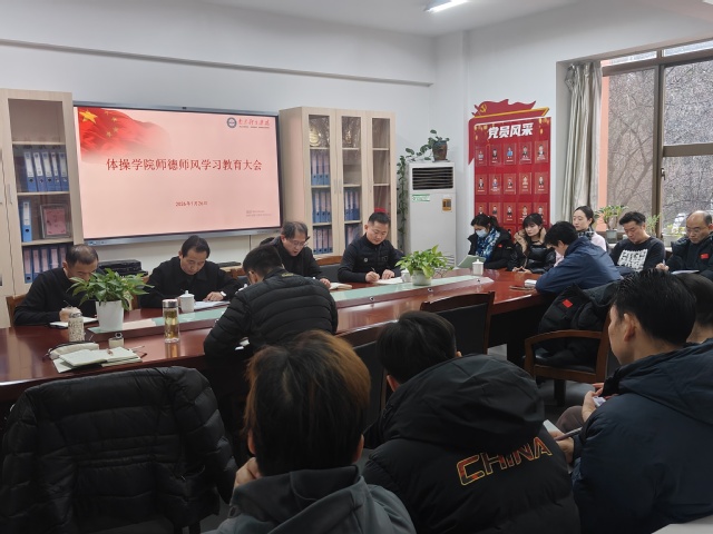 为深入贯彻落实“为党育人、为国育才” 的崇高使命,进一步强化学院教练员队伍职业道德建设,筑牢体育教育领域育人根基,2026 年 1 月 26 日上午,体操学院师德师风教育大会在学院会议室召开。全体教职工悉数参会,会议由学院党总支书记谢长虹主持。