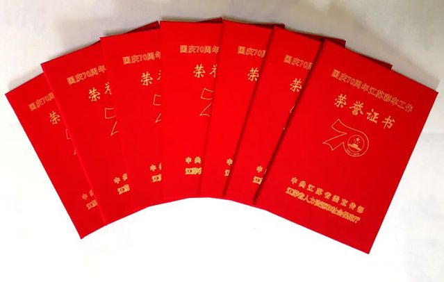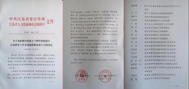国庆70周年江苏彩车工作荣誉证书
