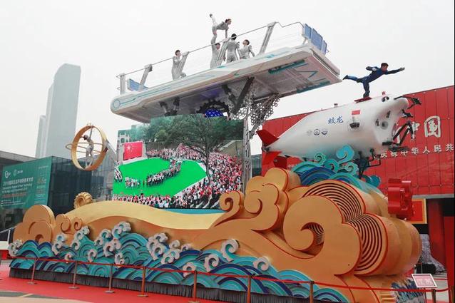 2019年国庆期间,体操学院7名运动员在彩车上的精彩表演