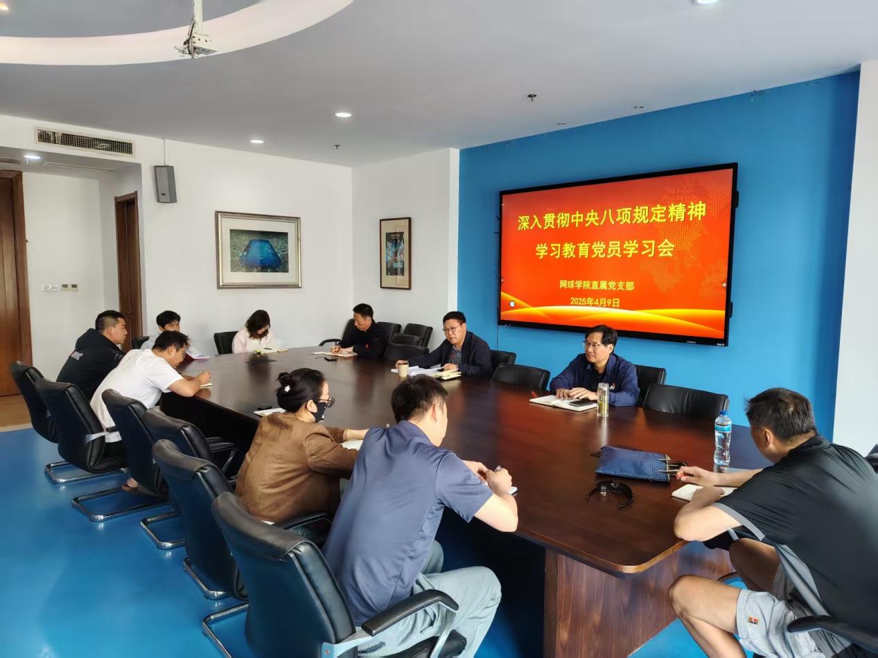 4月9日上午,网球学院直属党支部召开全体党员会议,举行专题学习会暨深入贯彻中央八项规定精神学习教育专题读书班,开展中央八项规定专题学习活动。会议由直属党支部书记唐存楼主持。