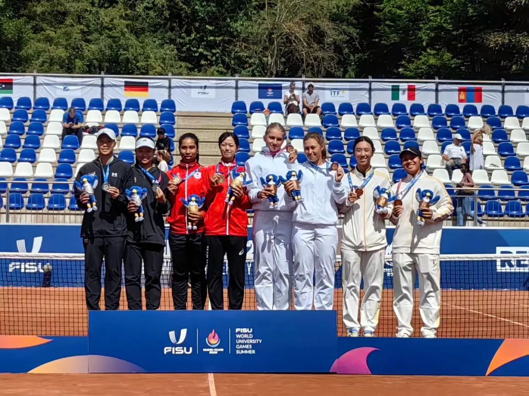 在德国举行的第32届世界大学生夏季运动会网球项目女子双打决赛中,江苏网球队运动员姚欣辛与搭档李宗钰凭借默契配合与顽强拼搏,为中国代表团再添一枚宝贵铜牌。