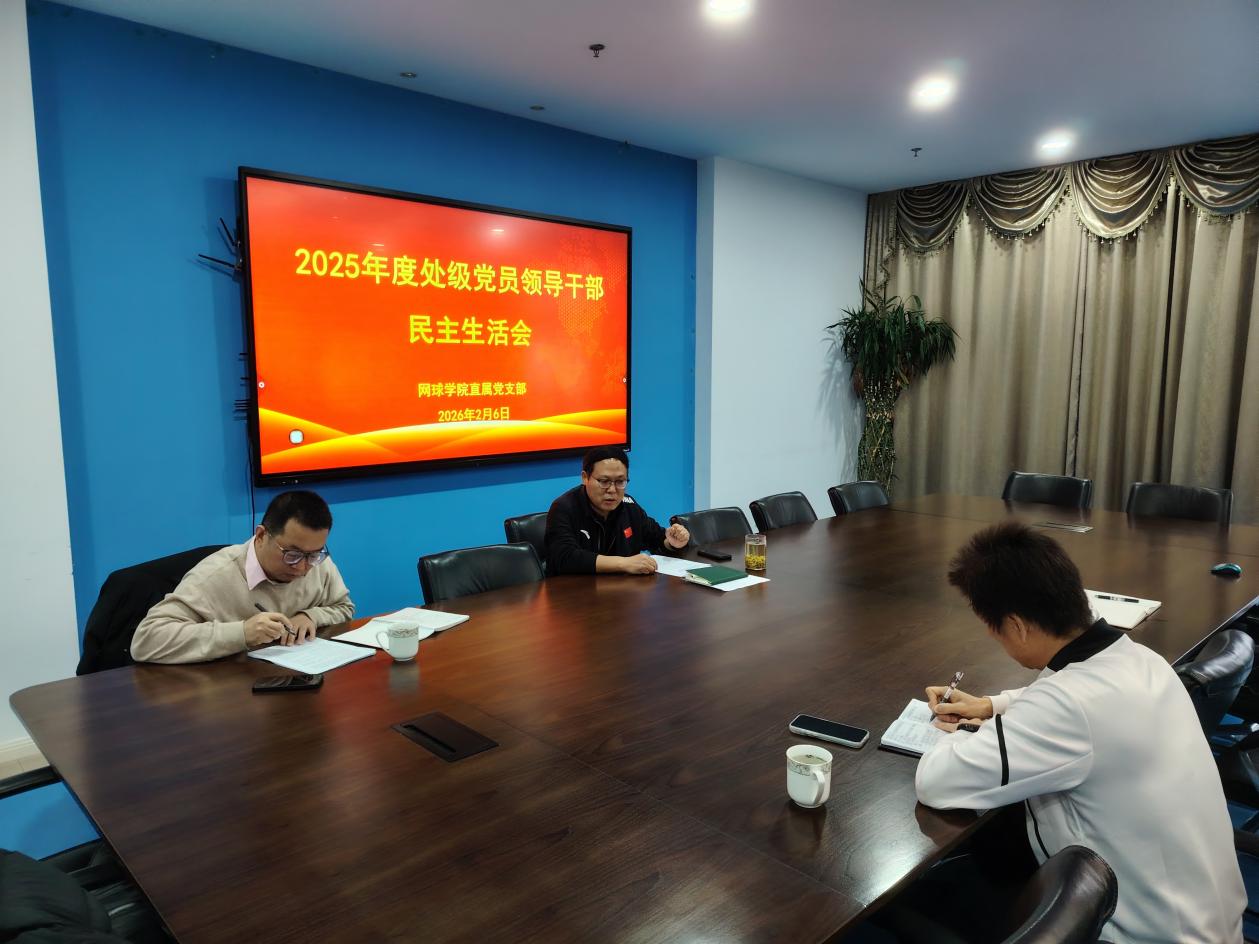 根据校党委《2025年度处级党员领导干部民主生活会工作实施方案》要求,网球学院直属党支部于2026年2月6日在网球学院澳网厅召开了2025年度处级党员领导干部民主生活会。网球学院直属党支部领导班子全体成员参加会议,支部部分党员列席会议。会议由直属党支部书记唐存楼主持。