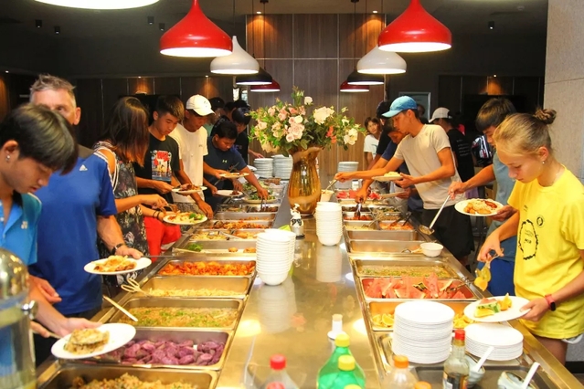 中国网球学院为本次晚宴准备了丰富、健康、营养的餐食,自助用餐模式为来自不同国家地区运动员、教练员提供更加多样化的餐饮选择,力求营造舒适优质的用餐体验。本次晚宴还准备了精彩纷呈的节目演绎,现场气氛热烈,运动员们热情高涨,掌声不断,引得满场欢腾。