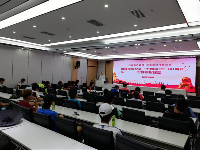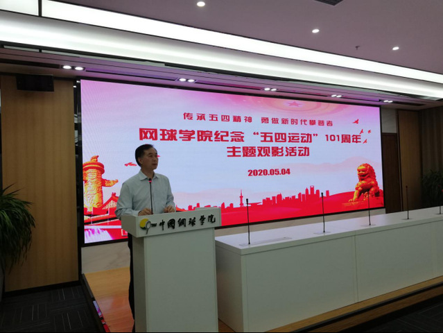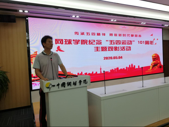 为进一步加强爱国主义教育,激励传承和弘扬“五四精神”,2020年5月4日下午,网球学院举行纪念“五四运动”101周年主题观影活动和草地足球赛,网球学院直属党支部书记丁习明、副院长姜惟及全体教练员、运动员参加活动。活动由姜惟副院长主持。