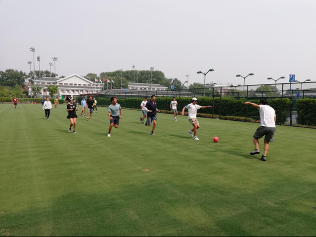 观影结束后,网球学院在草地网球场举行了队内足球赛活动。赛场上,青年运动员们挥洒汗水、释放热情,展现了新一代青年的蓬勃朝气和良好风貌。