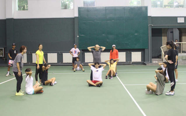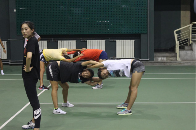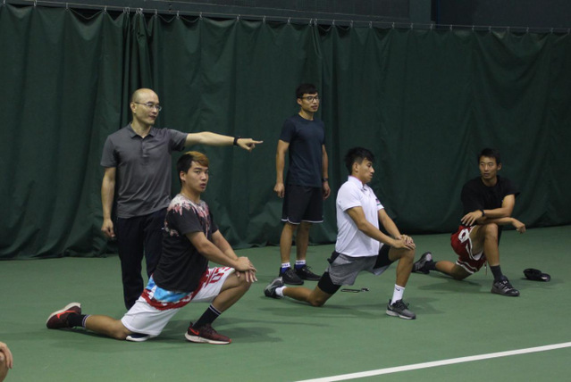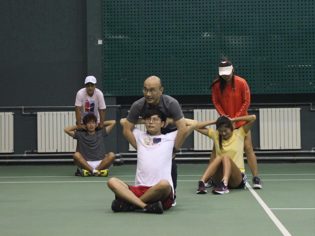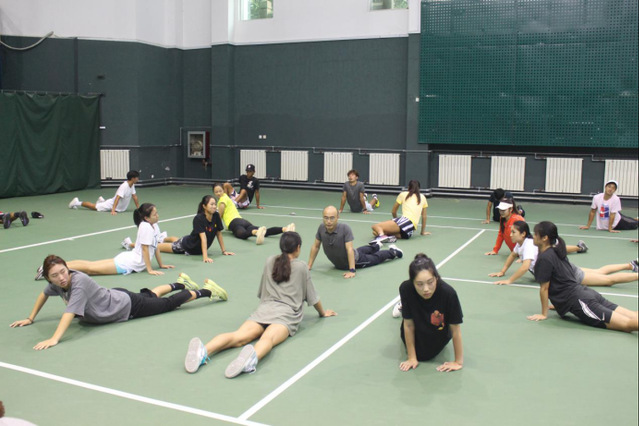 首先,秦学林院长为大家介绍了训练课后牵拉放松的重要性,并根据网球项目的特点为运动员设计了一套牵拉放松动作。随后,秦学林院长带领全体运动员进行了实践操练,实践操练分为个人牵拉放松与两人相互牵拉放松两个部分。秦学林院长一边认真演练,一边耐心讲解,不停地纠正运动员的错误动作。教练员们认真听讲,并根据秦学林院长的讲解对运动员的动作进行指导。秦学林院长生动幽默的讲解充分调动了运动员们的学习热情。现场气氛热烈高涨,训练上不断地传来运动员牵拉到位的叫声,学习效果显著。