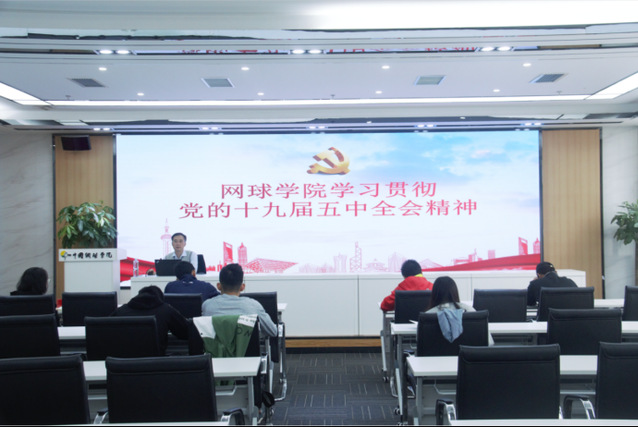 学习会议结束后,网球学院直属党支部召开了专题组织生活会,直属党支部书记丁习明带领党员同志和入党积极分子,集中学习了《习近平谈治国理政》第三卷第一篇章内容和党的十九届五中全会精神。