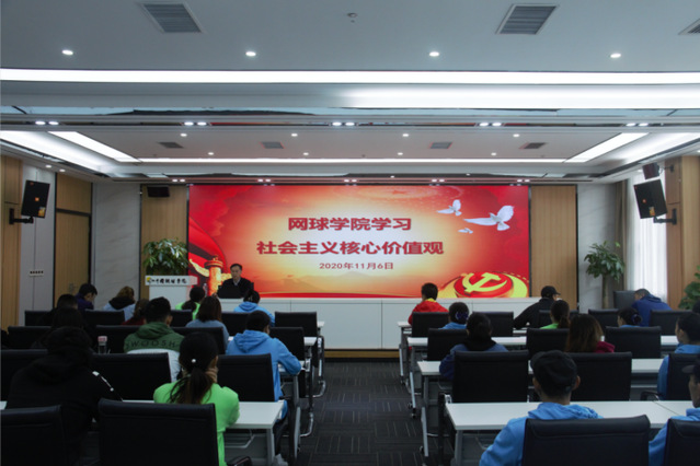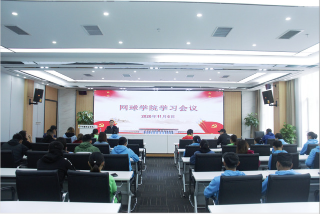 11月6日上午,网球学院召开全体教职员工学习会议,深刻学习领会社会主义核心价值观的内涵意义,传达贯彻习近平总书记关于制止餐饮浪费行为的重要指示和在纪念中国人民志愿军抗美援朝出国作战70周年大会上的重要讲话精神,传达校党委中心组专题学习会议精神。网球学院直属党支部书记丁习明、网球学院副院长姜惟、全体教职员工参加会议。