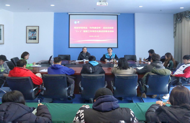 12月14日上午,网球学院召开专题会议,传达贯彻学校“作风建设年”活动总结暨“3+1”督查工作常态化推进部署会精神。网球学院直属党支部书记丁习明、网球学院院长鲍勤及全体教练员、管理干部参加会议。