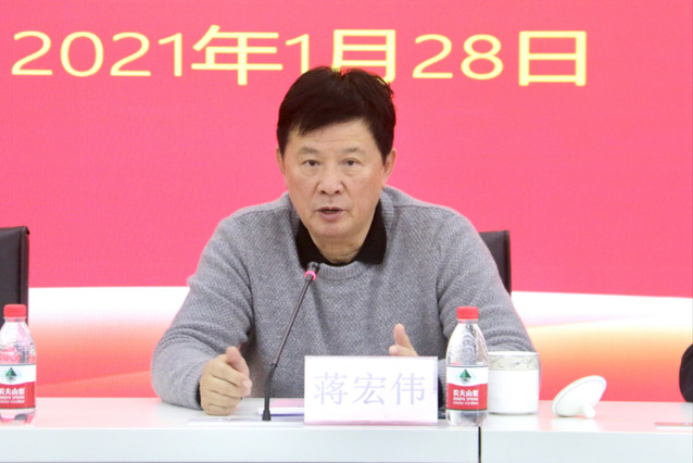 蒋宏伟院长发表重要讲话。他表示,展望2021年,学院发展仍面临着严峻挑战,当前探索学院疫情防控常态化下的发展道路具有重要现实意义。蒋宏伟院长对学院2021年工作提出具体要求。一是要以备战全运会为中心全面开展工作,在距离全运会开幕的二百多天时间里,要切实增强紧迫感和危机感,全力以赴做好备战工作,确保夺金目标任务顺利完成。二是要坚持贯彻“文化先行”的发展理念,希望学院全体“爱院如家”,进一步丰富文化内涵、提振精神风貌,讲好学院故事、传播学院正能量。三是要发挥好学院国家平台效应,努力擦亮“国字号”招牌,进一步推进国际网联国家金牌训练基地认证工作。四是坚持走好国际化、专业化、可持续发展道路,创新手段、整合资源,为学院国际办学项目运营发展注入长久生命力。五是要主动适应发展新格局,深入贯彻新发展理念,切实加强工作前瞻性、思考全局性、谋划战略性布局,以新气象新担当新作为开创工作新局面。蒋宏伟院长还特别强调要做好运动队春节封闭训练期间相关保障工作,并衷心祝愿学院在新的一年各项事业蓬勃发展,学院全体干部职工工作顺利、安康幸福。