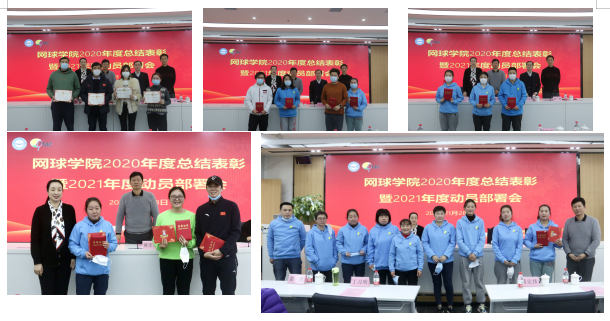 鲍勤院长宣读了《关于南京钟山网球发展有限公司中层管理干部聘任的决定》,南京钟山网球发展有限公司执行总经理惠莉为公司中层管理干部颁发聘书。姜惟院长宣读了《关于表彰2020年度网球学院优秀部门、部门先进个人、最美员工的决定》,学院领导分别为获奖部门、职工颁发荣誉证书。