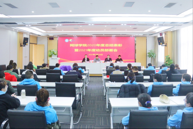 2021年1月29日下午,网球学院在国际报告厅召开2020年度总结表彰暨2021年度动员部署会。中国网球学院院长蒋宏伟、PA视讯集团入口网球学院直属党支部书记丁习明、PA视讯集团入口网球学院院长鲍勤、PA视讯集团入口网球学院副院长姜惟以及全体干部职工参加会议。会议由丁习明主持。