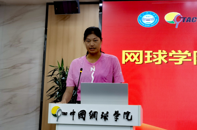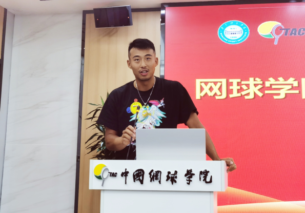 会上,中国网球学院院长、江苏网球队总教练蒋宏伟以“干竞技体育必须有大无畏的战斗精神”为主题,做了鼓舞人心的决赛动员讲话。