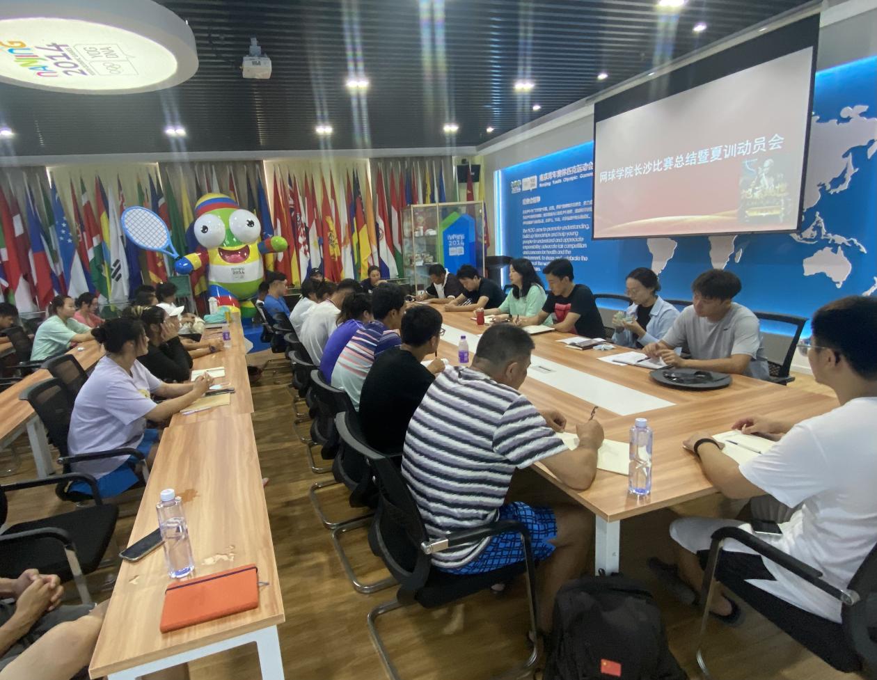 7月5日下午,网球学院召开中国网球巡回赛长沙站比赛总结暨夏训动员会。中国网球学院常务副院长、PA视讯集团入口网球学院院长鲍勤,网球学院全体管理干部、教练员、运动员、队医等参加会议。会议由鲍勤院长主持。