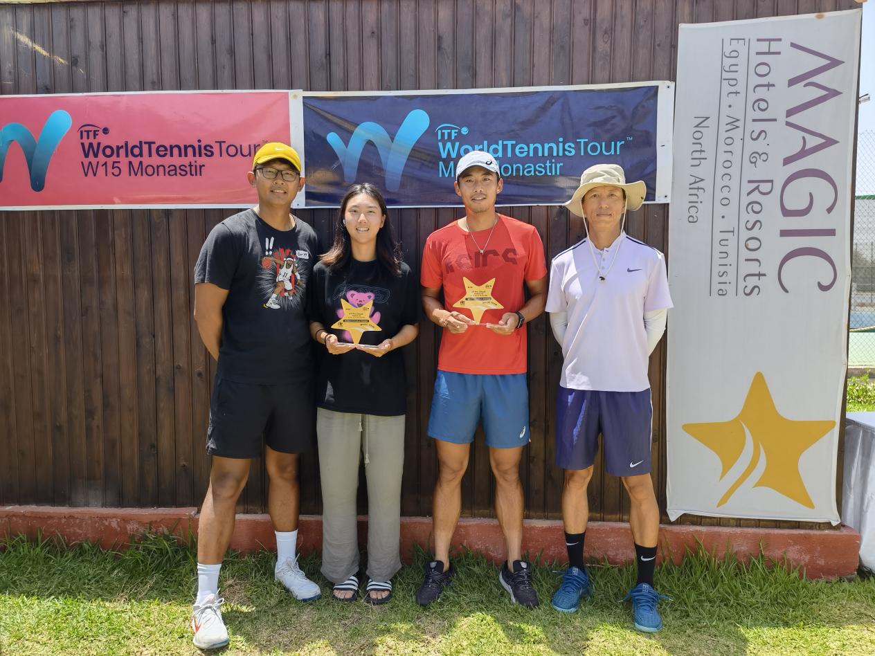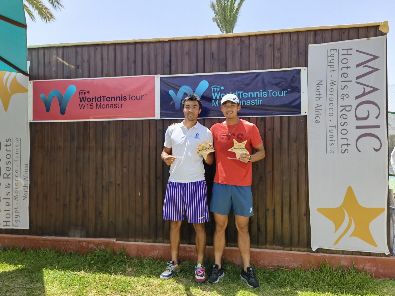 北京时间6月26日,在ITF国际网球巡回赛突尼斯站(15K)男子双打决赛中,江苏网球队运动员张择与特日格乐搭档在5-7先失一局的情况下,以6-1和11-9连扳两局,战胜 Bosio/Noce组合夺得男子双打冠军。江苏网球队运动员姚欣辛也在ITF国际网球巡回赛突尼斯站突尼斯(W15)女子双打决赛中与韦思佳组合夺得女子双打冠军。文:韩燕成图:姜惟审核:鲍勤