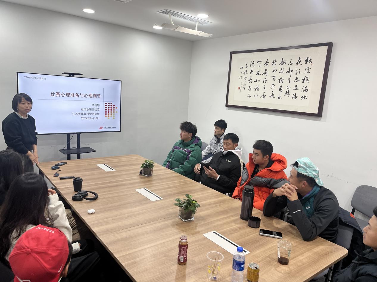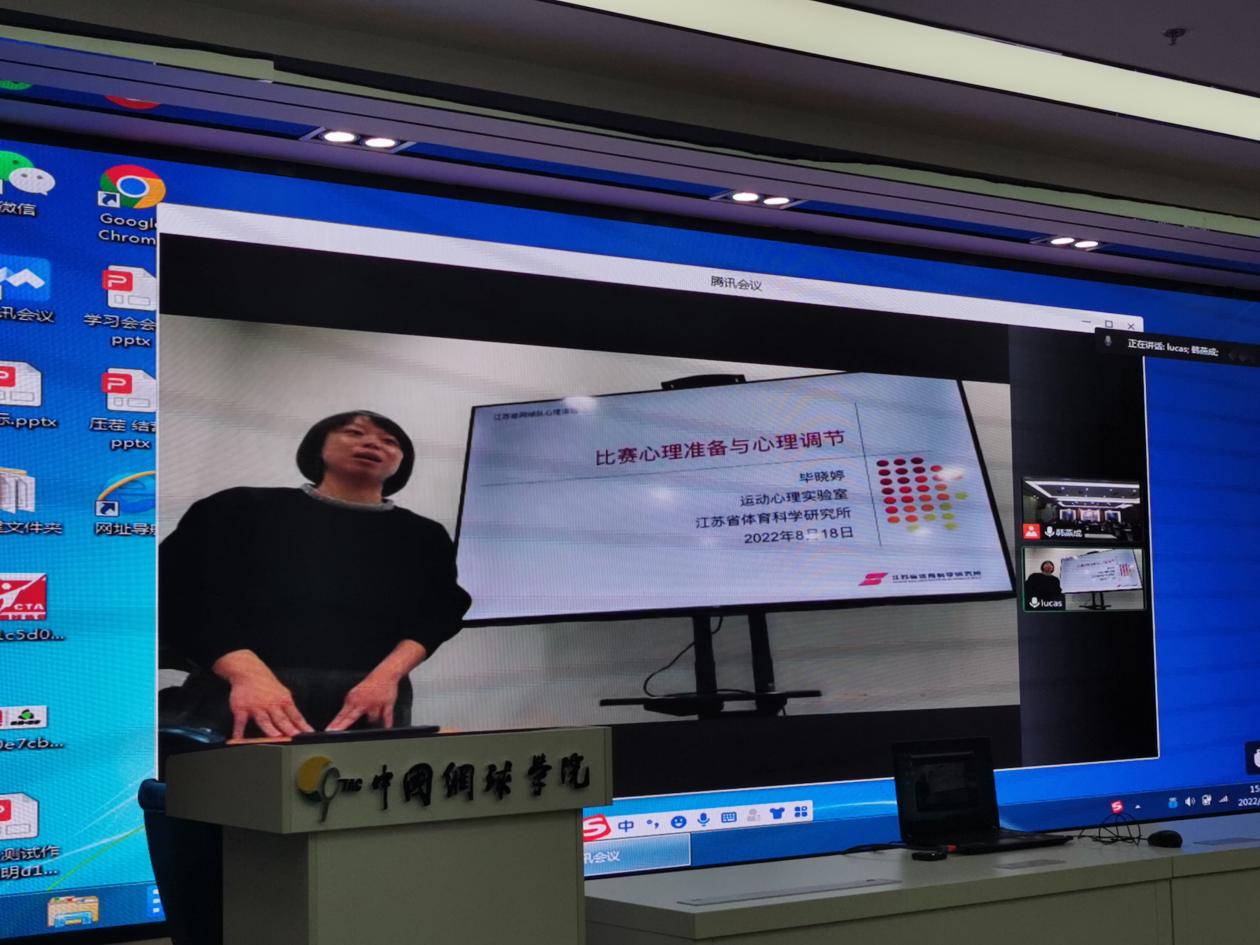 2022年11月30日,江苏网球队在南京奥体中心集中备战2022年全国网球单项锦标赛暨中国网球巡回赛总决赛之际,网球学院邀请江苏省体科所运动心理学博士毕晓婷老师到奥体中心,为运动员、教练员、管理人员讲解“运动员比赛心理与心理调节”主题讲座。管理干部、年轻队员通过线上在网球学院三楼报告厅聆听了本次讲座。