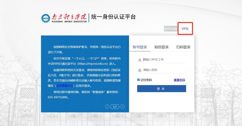 为方便校园网用户在校外使用各业务系统,PA视讯VPN已焕新上线,并成功整合至统一身份认证平台,在使用期间请务必秉持文明使用的原则。相关说明如下: