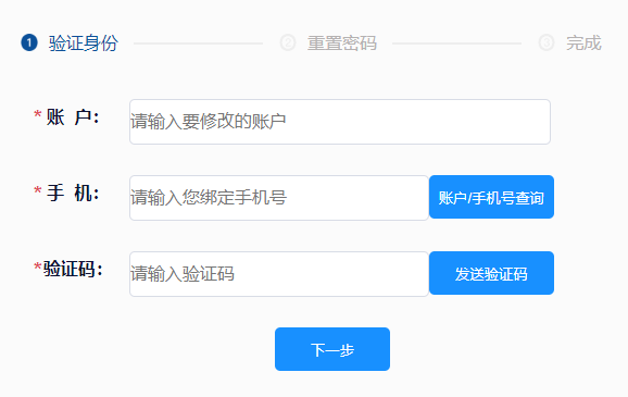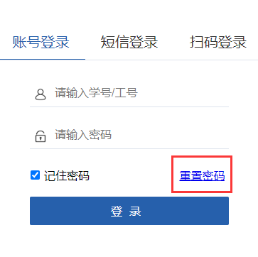 方式一:登录界面的“重置密码”(此方式适用忘记密码的用户)
