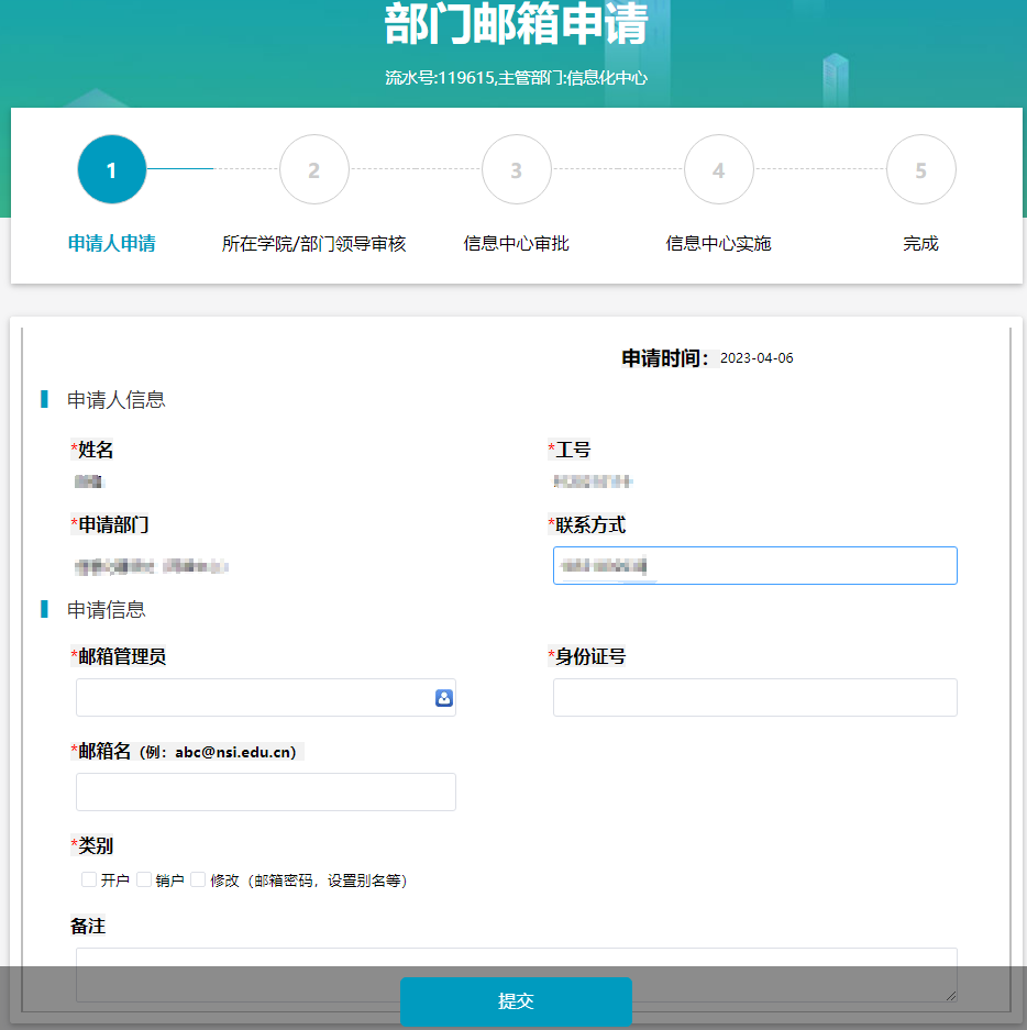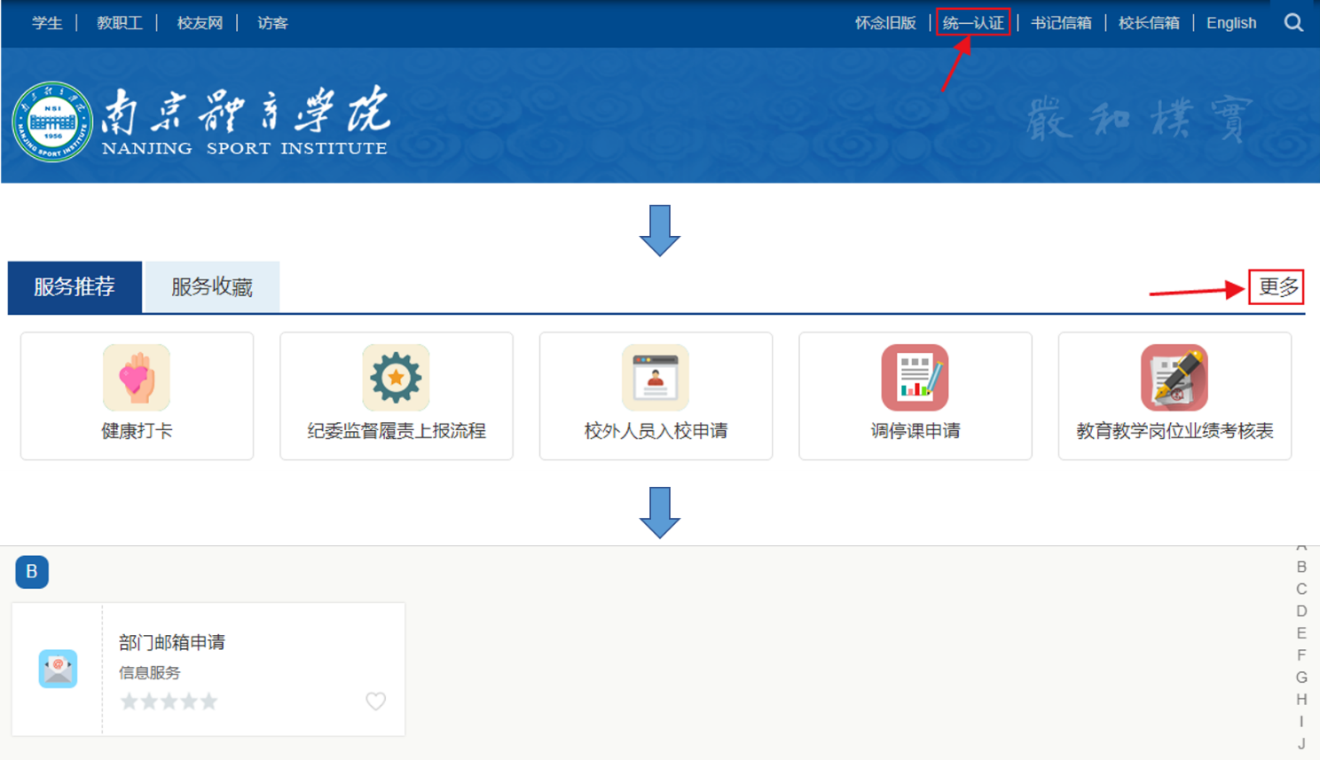 1.进入信息门户,点击“部门邮箱申请”服务。