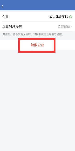 Tips: 如果该企业是自己创建的,可以选择“解散企业”;如果该企业不是自己创建的,可以选择“退出企业。”