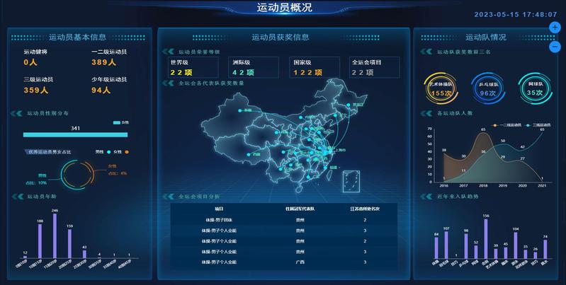 数据可视化平台是一款即时分析的轻量级可视化大屏编辑工具,输出载体为各类户外、室内大型展示屏幕,同时可以适配PC端、移动端的输出。目前信息化建设处已根据学校整体数据情况,输出校情概况数据大屏,同时依据不同主题分析,输出基本校情、运动员等7个分析看板。