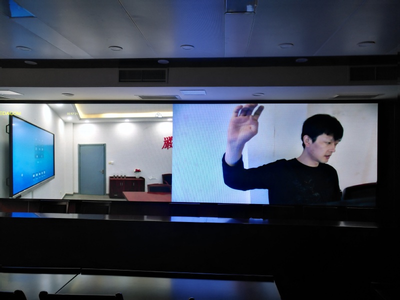 而本部与仙林小区之间也建立一套专用视频会议系统。在本部201会议室与仙林101会议室里分别安置了一台视频会议一体机,集画面采集、展示、收声、放音等功能于一身。两校区间的管理干部、教师可藉由此系统快速联络、传达信息,免去了面对面会议的人员流动和外出成本,大幅提升了会议效率。