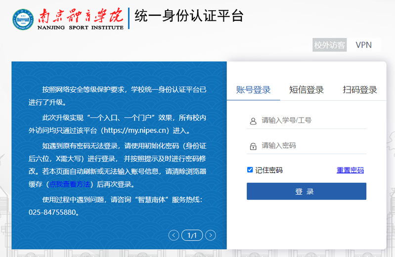 Tips:登录时提示账号或密码错误,请确认统一认证账号是否有效,教职工请联系人事处,学生请联系教务处,临时人员(T开头)请联系各部门信息员。