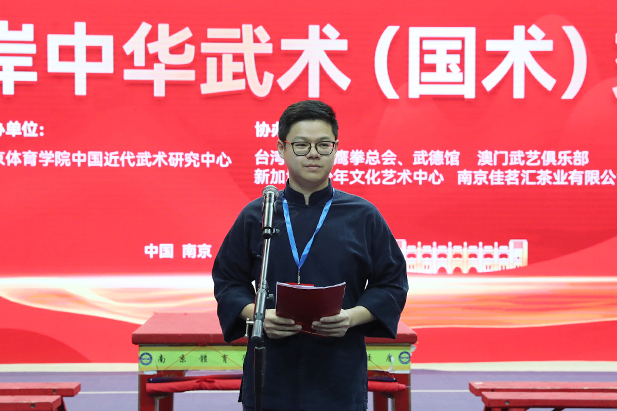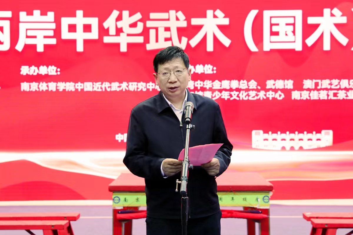 郑智荣在讲话中介绍了台湾武德馆的基本情况,表示非常高兴能到中华武术圣地国术场参加活动。他说,作为酷爱武术、自幼习武之人,到南体参与两岸武术交流,有如回家般亲切,内心十分激动。“我今天在台上,其实是代表着,疫情再难也打不破我们武术界的团结精神,更打不破两岸一家亲的羁绊。”