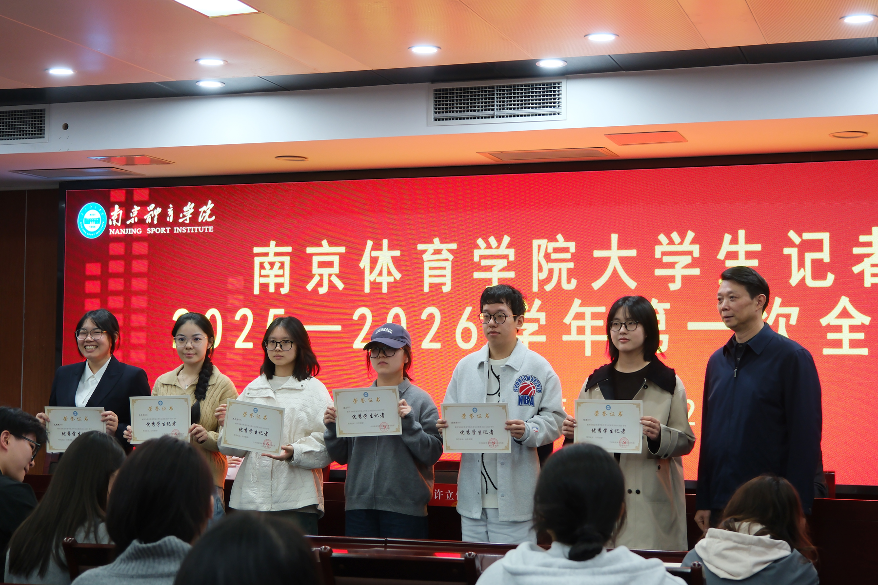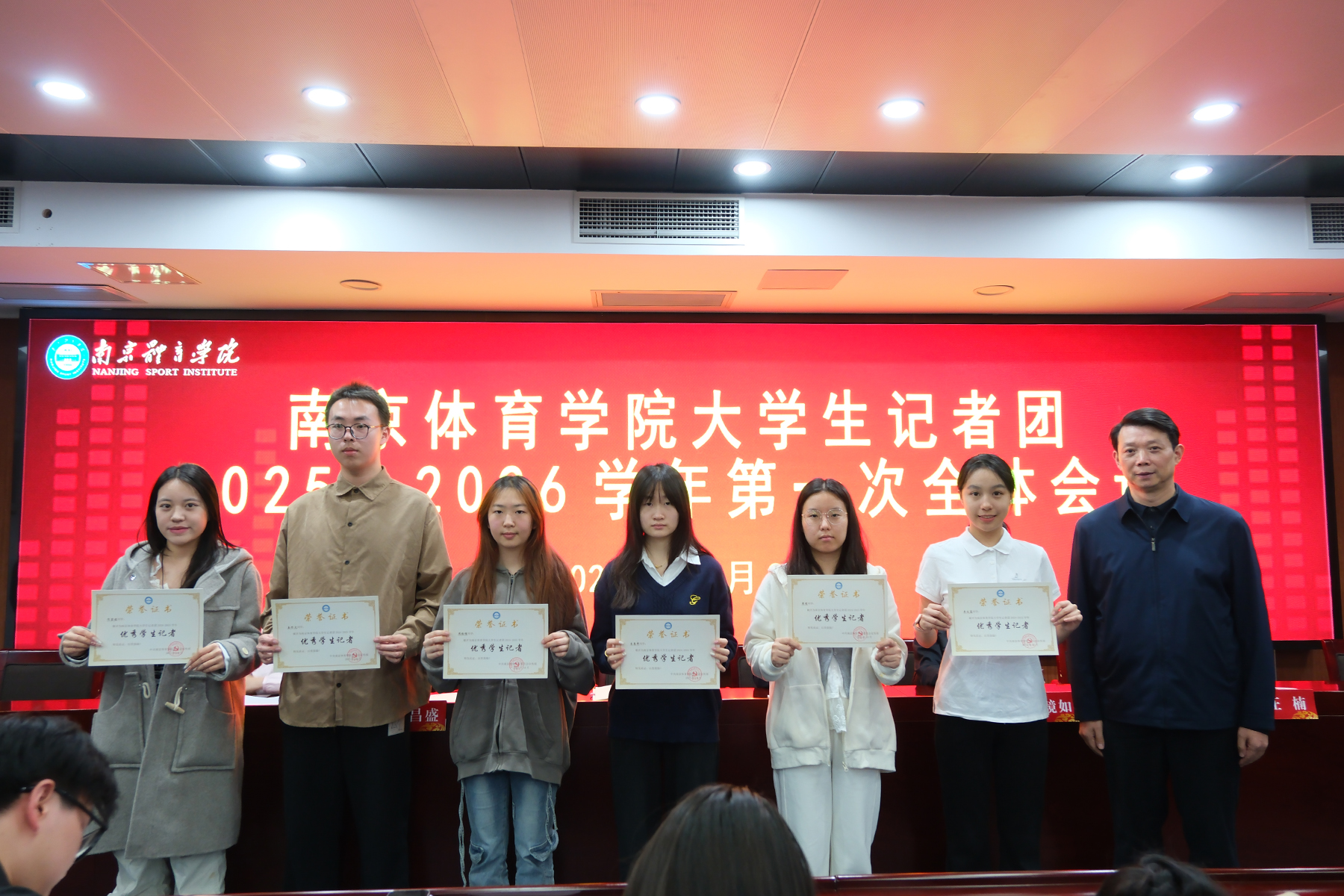 许立俊在会上讲话。他对记者团新一届主席团成员和受表彰的优秀学生记者及新加入的记者团成员表示衷心祝贺,对一年来同学们为做好学校宣传思想文化工作所付出的劳动表示诚挚感谢。他讲述了自己在南体成长的心路历程,介绍了记者团历届优秀成员的先进事迹,勉励同学们不忘初心、牢记使命,认真学习、练好本领,努力成长为担当民族复兴重任的时代新人。他希望大家充分利用好记者团这一学生组织和校级媒体平台,发挥学生记者优势,积极参与学校宣传实践工作,切实为学校建设高水平体育大学贡献青春力量。