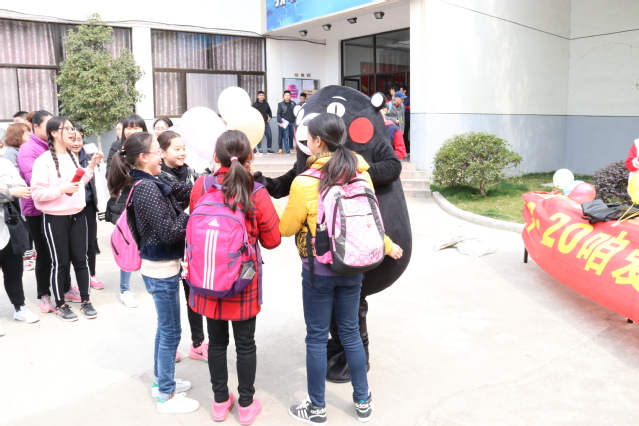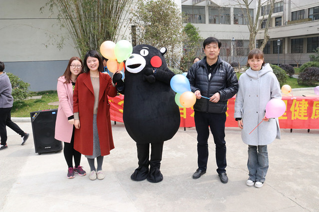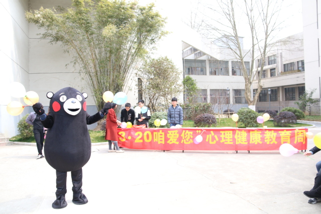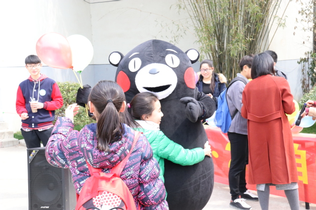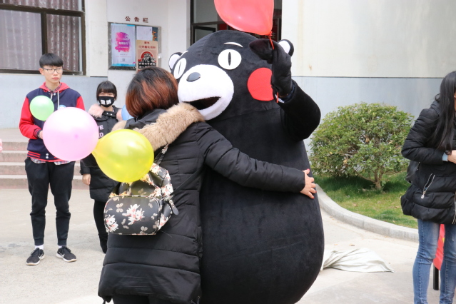 “靠近你,拥抱你”活动旨在通过拥抱的形式拉近人与人之间的距离,传递温暖,拒绝冷漠,传递正能量。“靠近你,拥抱你”free hug活动得到广大学生的参与,许多老师也参与其中。拥抱温暖的玩偶熊本熊,在校园里传递温暖,关注每位师生的心理健康。
