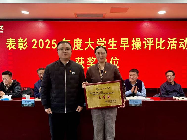 学工处副处长万冲凯为2025年大学生早操评比活动“三等奖”体育教育与人文学院颁奖