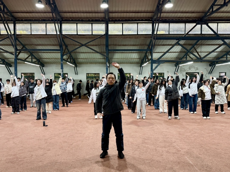 本次早操活动中,两校区同步举行升旗仪式,灵谷寺校区升旗仪式由校团委国旗班与运动健康学院共同执行,仙林校区由体育产业与休闲学院负责执行。伴随着庄严的《义勇军进行曲》,五星红旗冉冉升起,全体学生昂首肃立、行注目礼,目光坚定、神情庄重,在晨光中凝聚起深厚的爱国情怀与强烈的集体荣誉感。升旗仪式结束后,各学院结合专业特色,有序组织学生前往场馆内开展早锻炼活动。晨跑队伍步伐铿锵、口号嘹亮,尽显青春朝气;八段锦练习动作舒展、气韵流畅,彰显体育底蕴,动静相映间,构成了春日校园里一道朝气蓬勃的风景线。