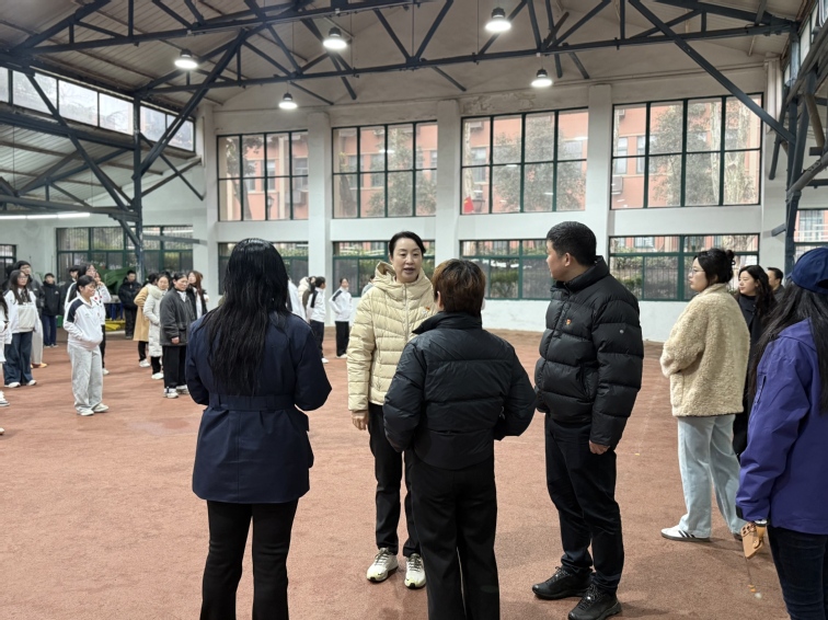 早操过程中,鲍勤详细询问了学生参与度、锻炼安全保障及活动组织流程等情况,与各学院负责人深入交流探讨。她强调,要立足2025级学生专业特点,持续优化早操内容与形式,注重增强活动的趣味性与实效性,让清晨锻炼真正成为引导学生“爱体育、强体魄”的重要载体,助力学生在运动中锤炼意志、强健体魄。