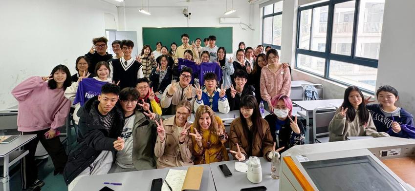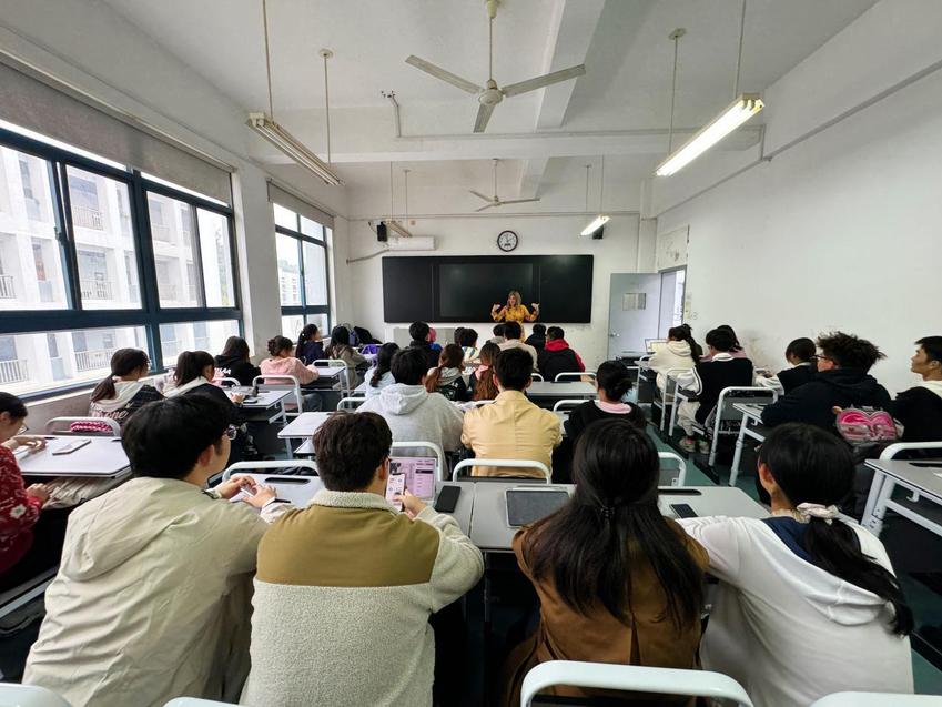 2023年11月9日,体育产业与休闲学院体育经济管理系中外合作办学项目举办了一场别开生面的ESL示范课。来自罗克福德大学国际事务部副主任, ESL中心负责人麦琪·卡斯茨基亲自为同学们授课。课程开始前,麦琪老师与同学们热情的拥抱让课程迅速破冰。