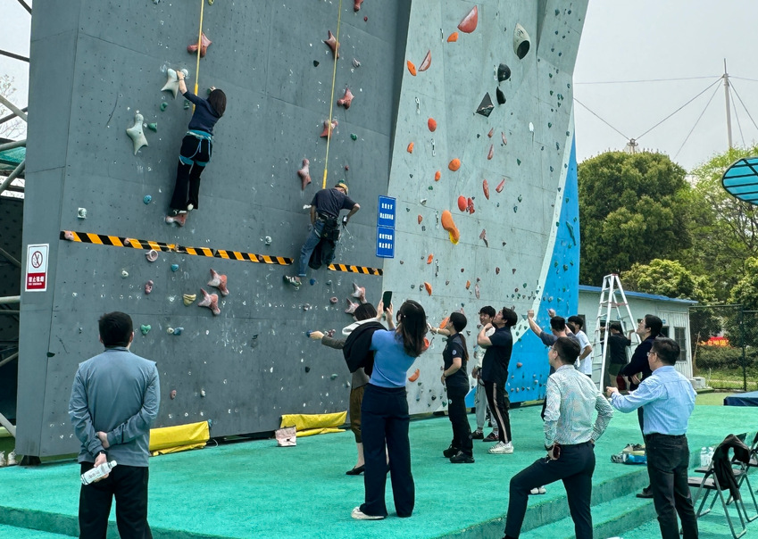 会后,南京聚宝山旅游产业发展有限公司相关人员在柏景岚副院长的带领下参观了学院壁球馆和攀岩场地,并体验了攀岩项目。