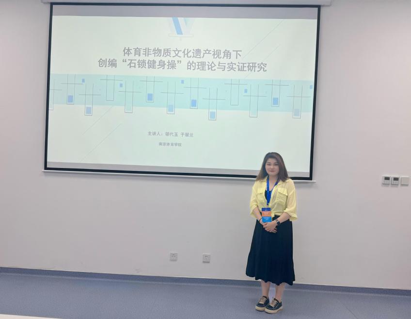 在会议期间,邬代玉老师以《体育非物质文化遗产视角下创编“石锁健身操”的理论与实证研究》为题进行专题报告。此次论文报告会,我院还荣获“优秀组织奖”。再一次展现出我院教师积极参与教学科研与学术交流的风采。
